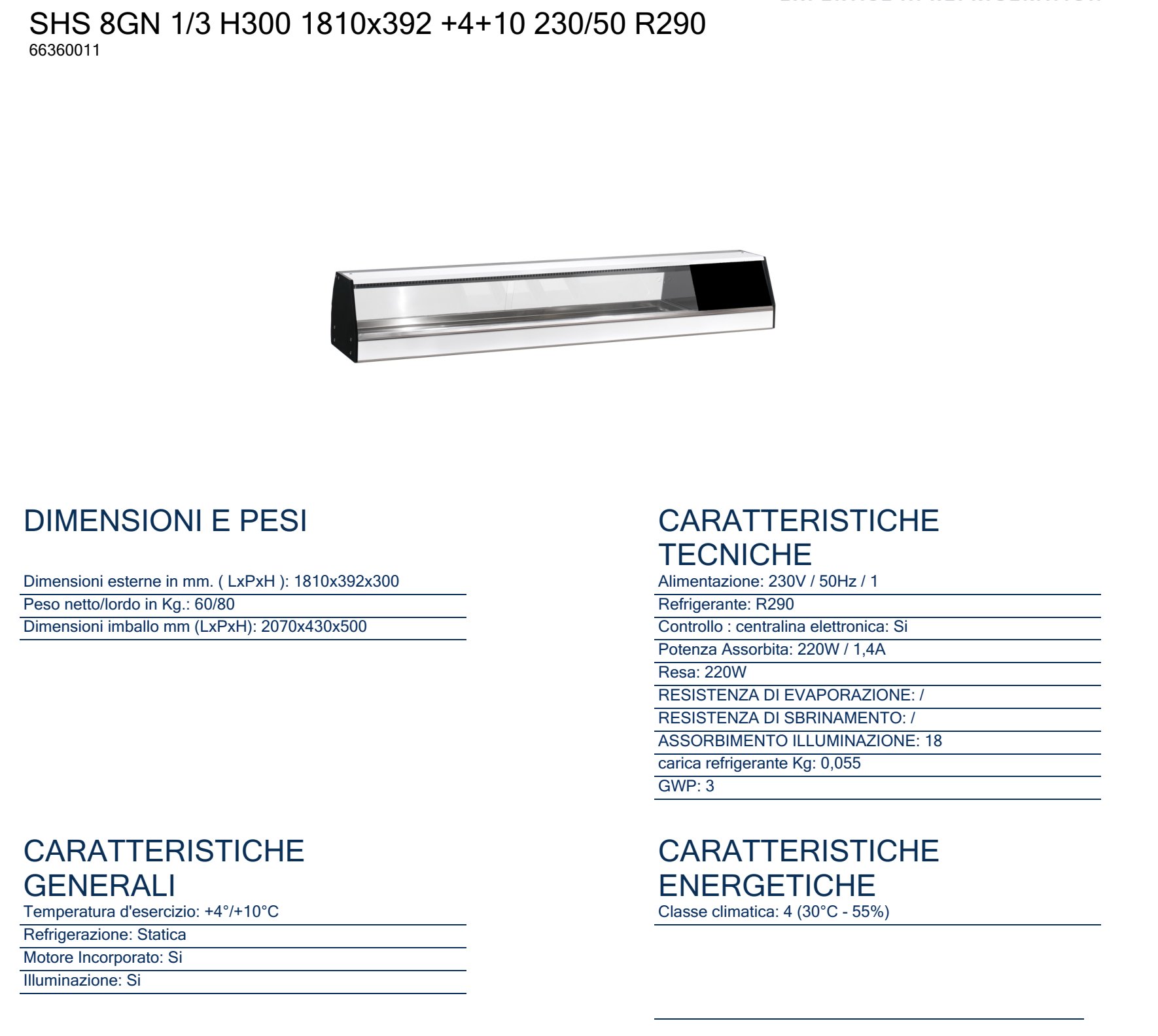 Vetrina refrigerata statica SUSHI - TAPAS 8 SHS.