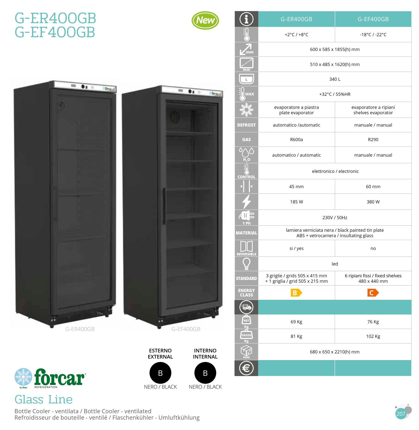 Frigorifero nero porta a vetro Forcar litri 340 G-ER 400GB + 2/+8°.€ 681,00 (+ iva € 149,82)
