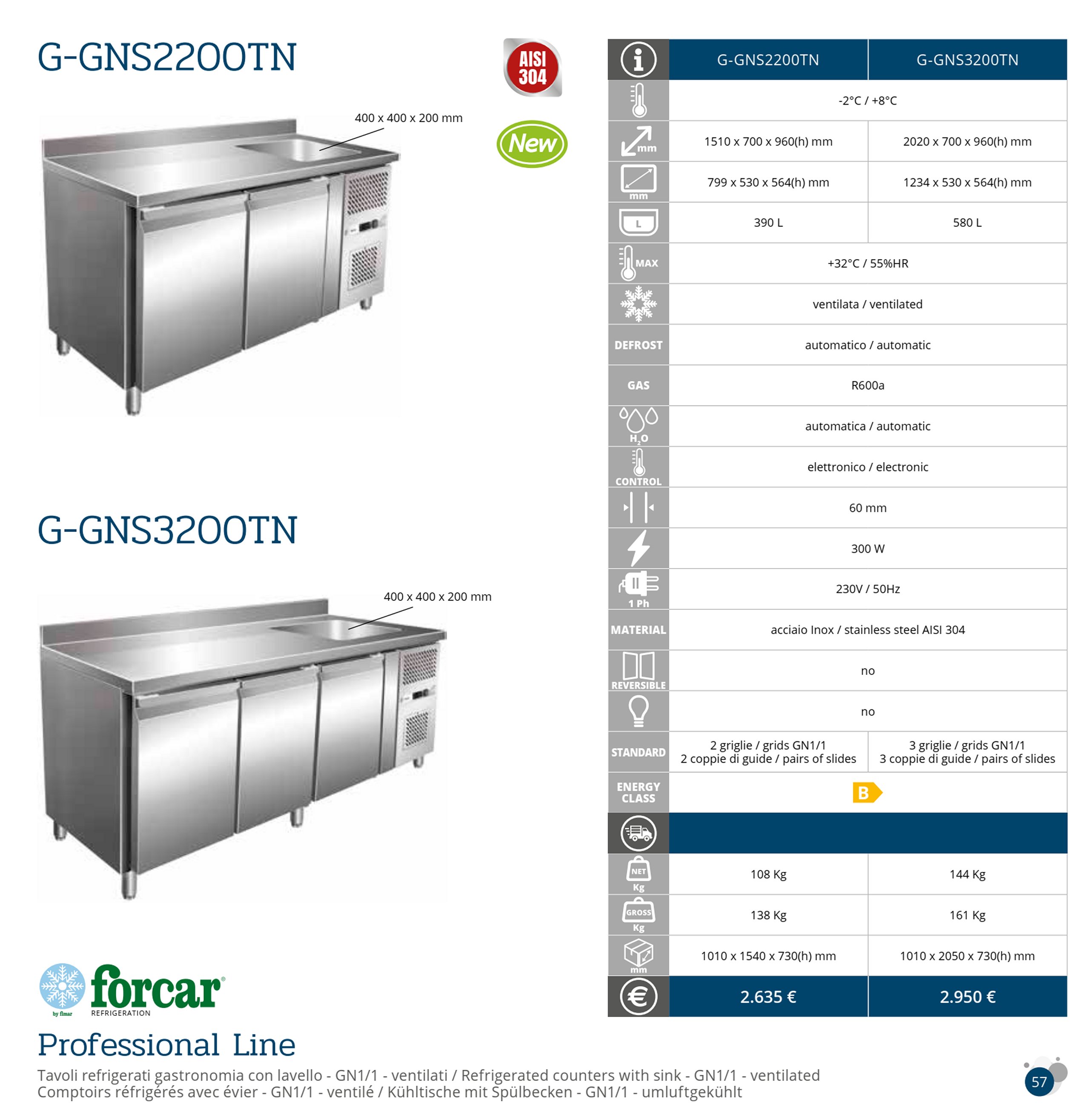Banco refrigerato Gastronorm mod. Forcar G-GNS2200TN
