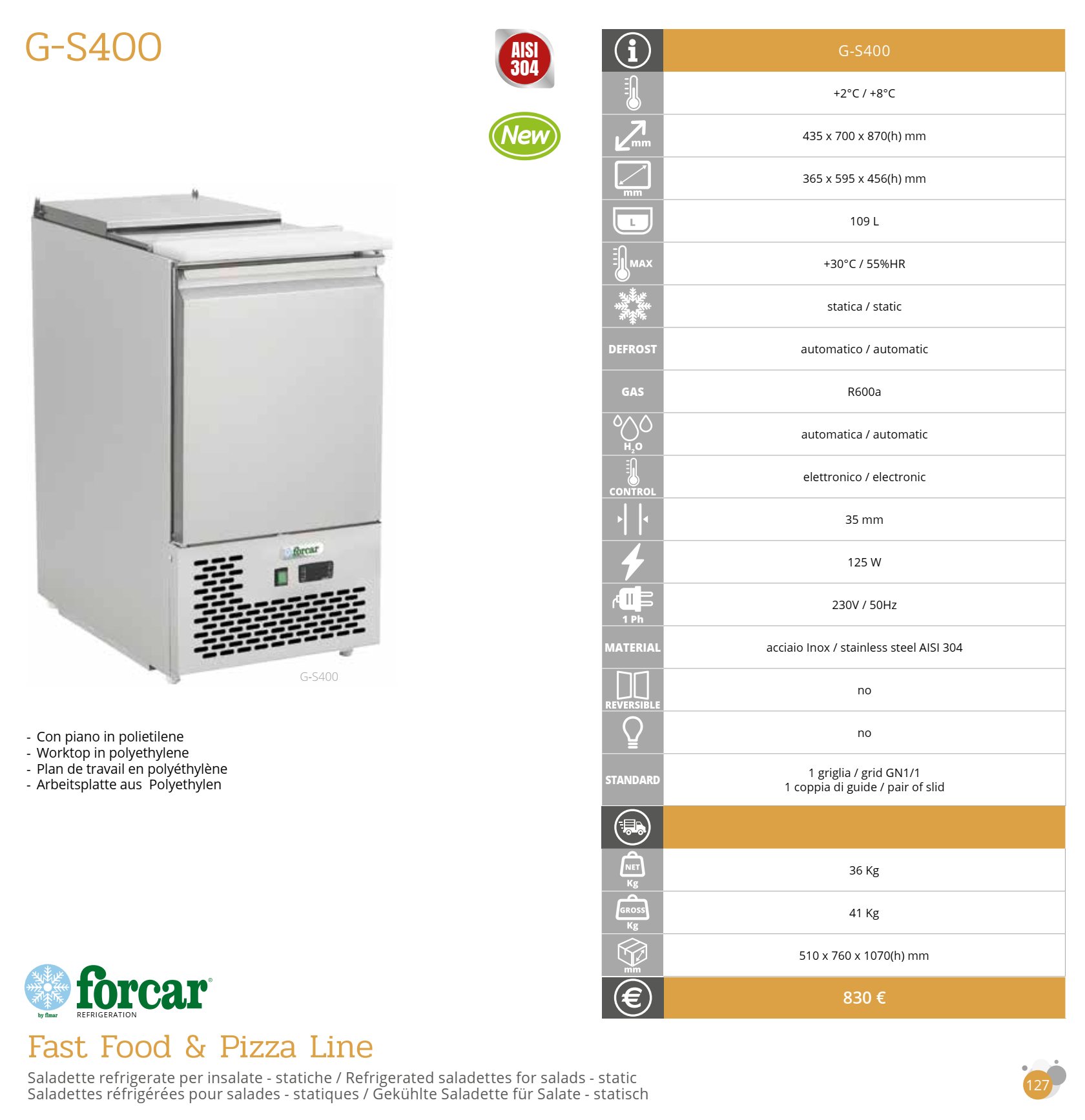 Saladette refrigerata Forcar per insalate G-S400€ 514,00 (+ iva € 113,08)