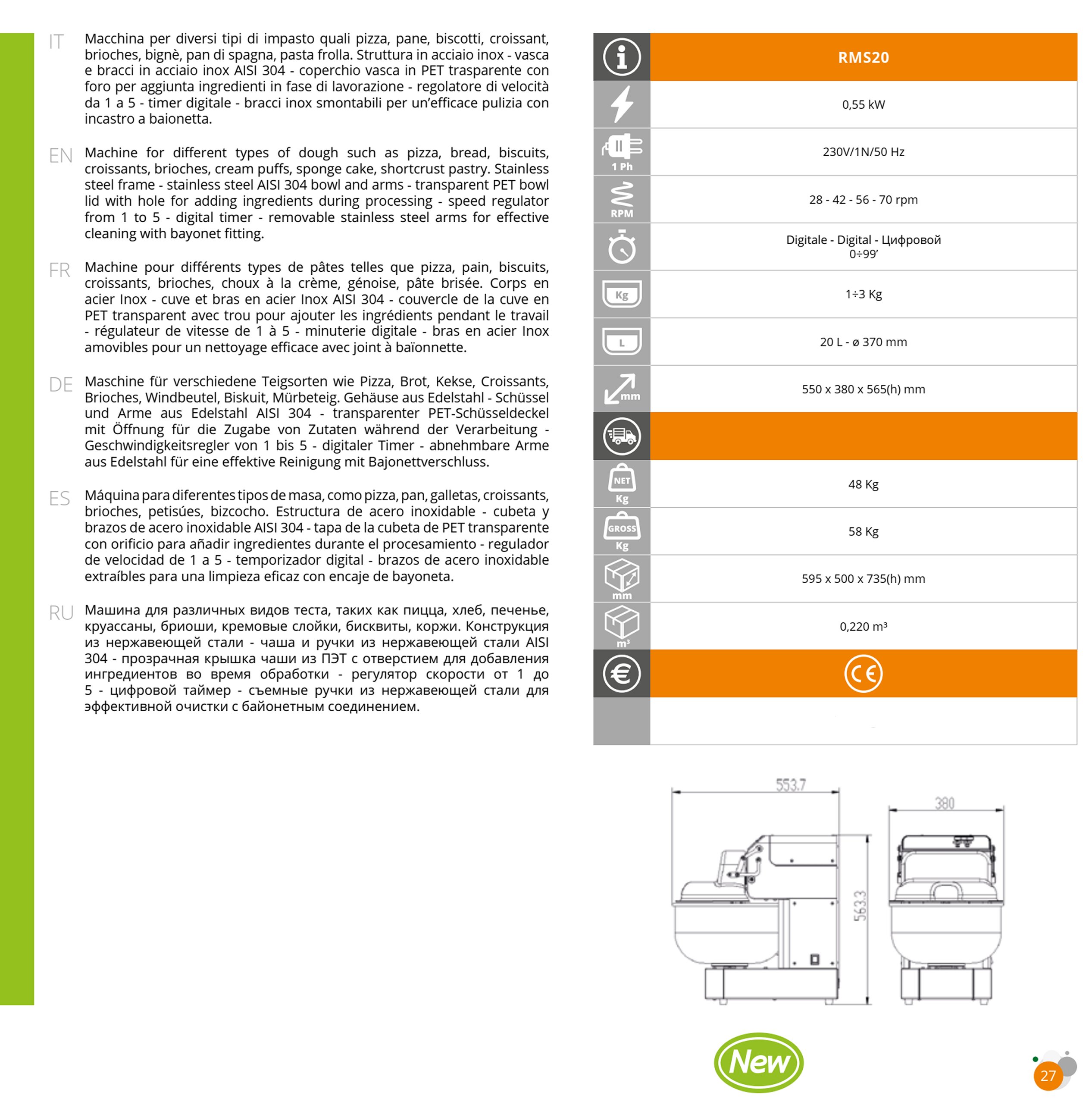 Impastatrice a braccia tuffanti RMS20€ 1.265,00 (+ iva € 278,30)
