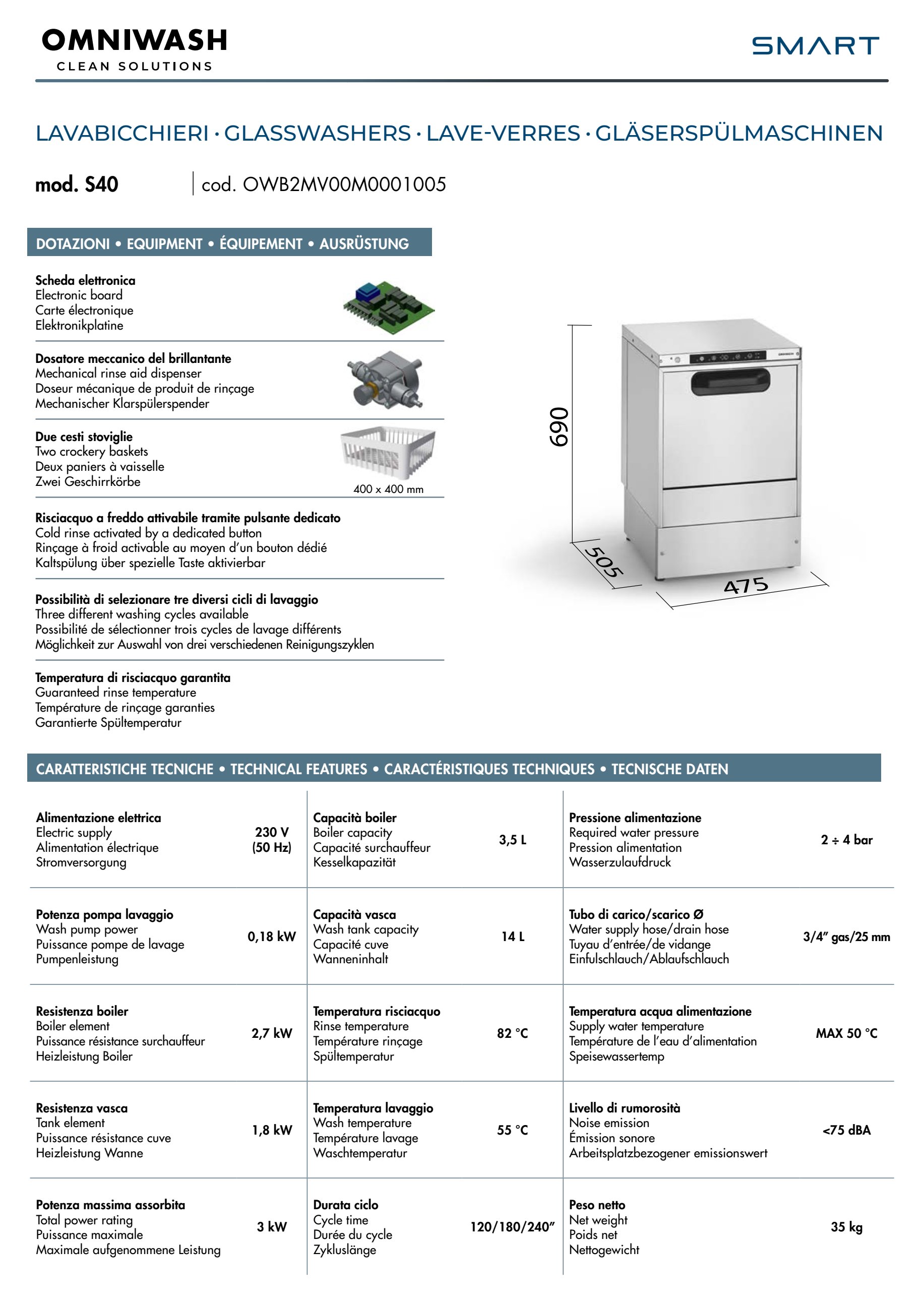 Lavabicchieri Omniwash modello Smart S40