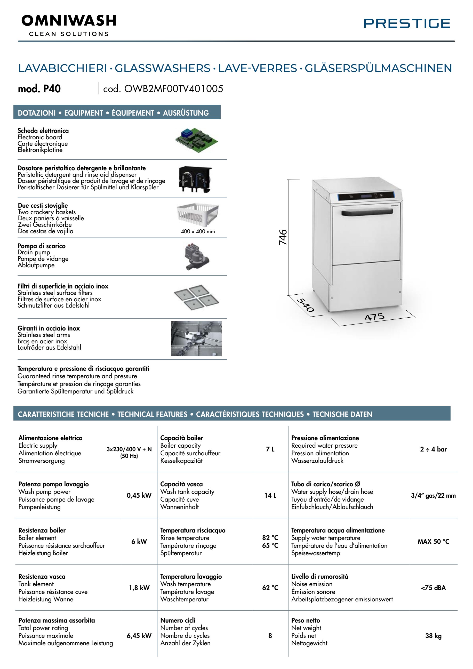 Lavabicchieri Omniwash modello Prestige P40.€ 1.328,00 (+ iva € 292,16)