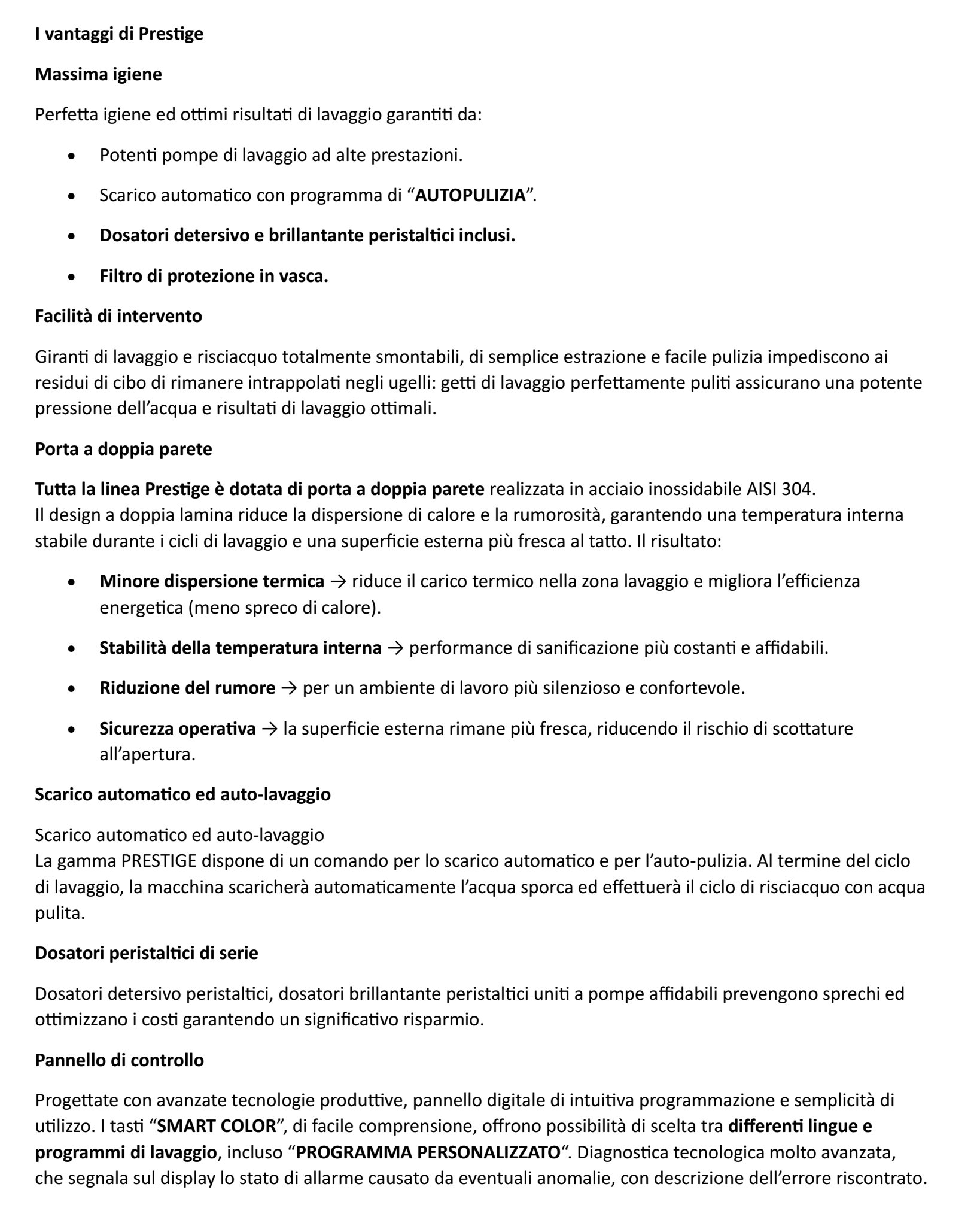 Le apparecchiature della Linea Prestige rispondono perfettamente ad esigenze di semplicità d’uso, bassi costi di utilizzo e lunga durata.