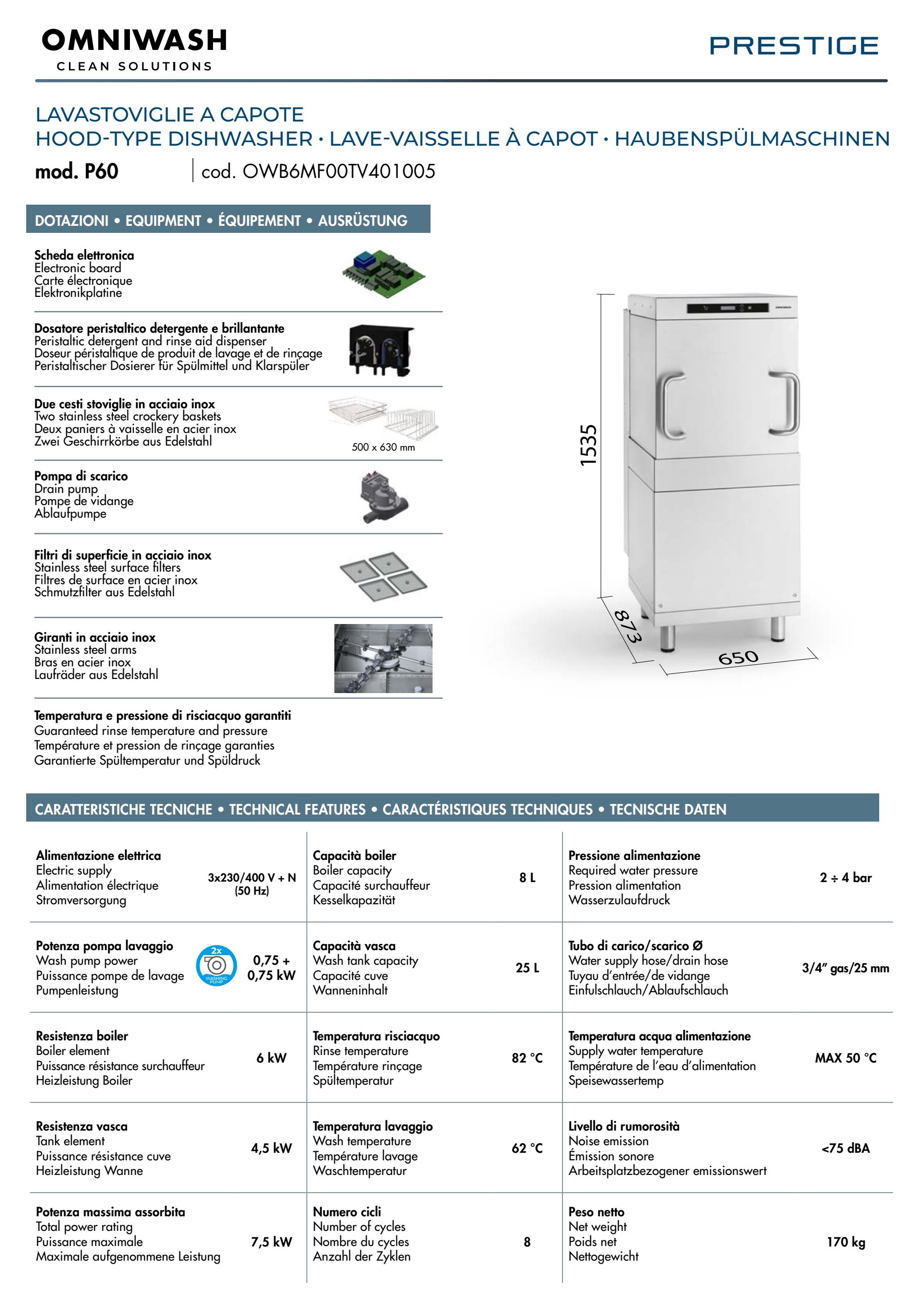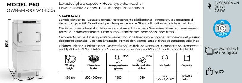 Lavastoviglie Omniwash modello Prestige P60.€ 3.340,00 (+ iva € 734,80)