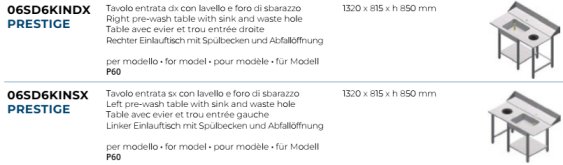 Disponibili tavoli ingresso e uscita dx - sx. Chiedere quotazione.