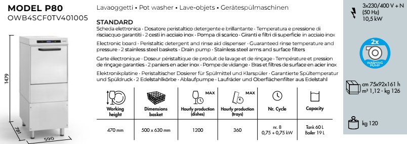 Lavaoggetti Omniwash modello Prestige P80